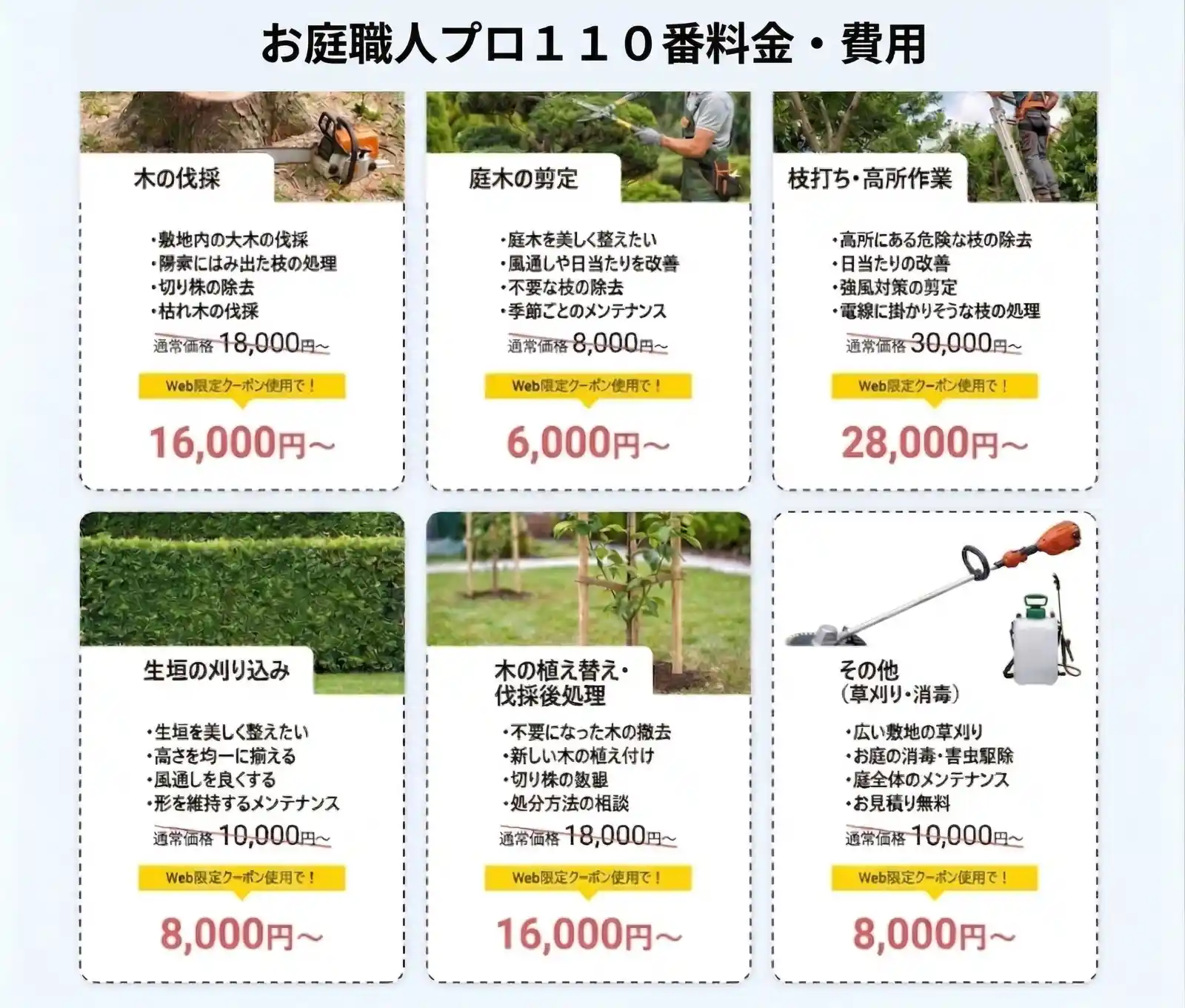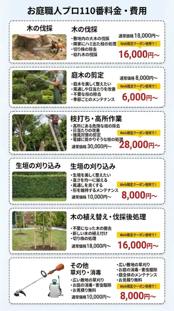 | 木のサイズ・種類 | 剪定料金(目安) |